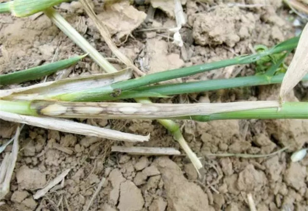 病情穩(wěn)定期:該時(shí)期抽穗后,莖稈變硬,阻止病菌繼續(xù)擴(kuò)展,該時(shí)期一般在5月上中旬后,病斑高度、病葉鞘位與侵莖數(shù)都基本穩(wěn)定,病株上產(chǎn)生白色至褐色不規(guī)則菌核,而后落入土壤越夏。重病株因輸導(dǎo)組織受損而迅速失水枯死,田間出現(xiàn)枯孕穗和枯白穗。