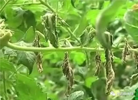 番茄出現(xiàn)這種情況是典型植株生理性障礙,出現(xiàn)這種情況的一個原因是因為天氣,比如遇到連陰天氣,天氣突然轉(zhuǎn)晴,造成葉片急性失水發(fā)生干枯。但番茄出現(xiàn)這種情況的根本原因還是因為植株根系弱,毛細根不發(fā)達不能吸收營養(yǎng),根系吸收營養(yǎng)慢造成的。