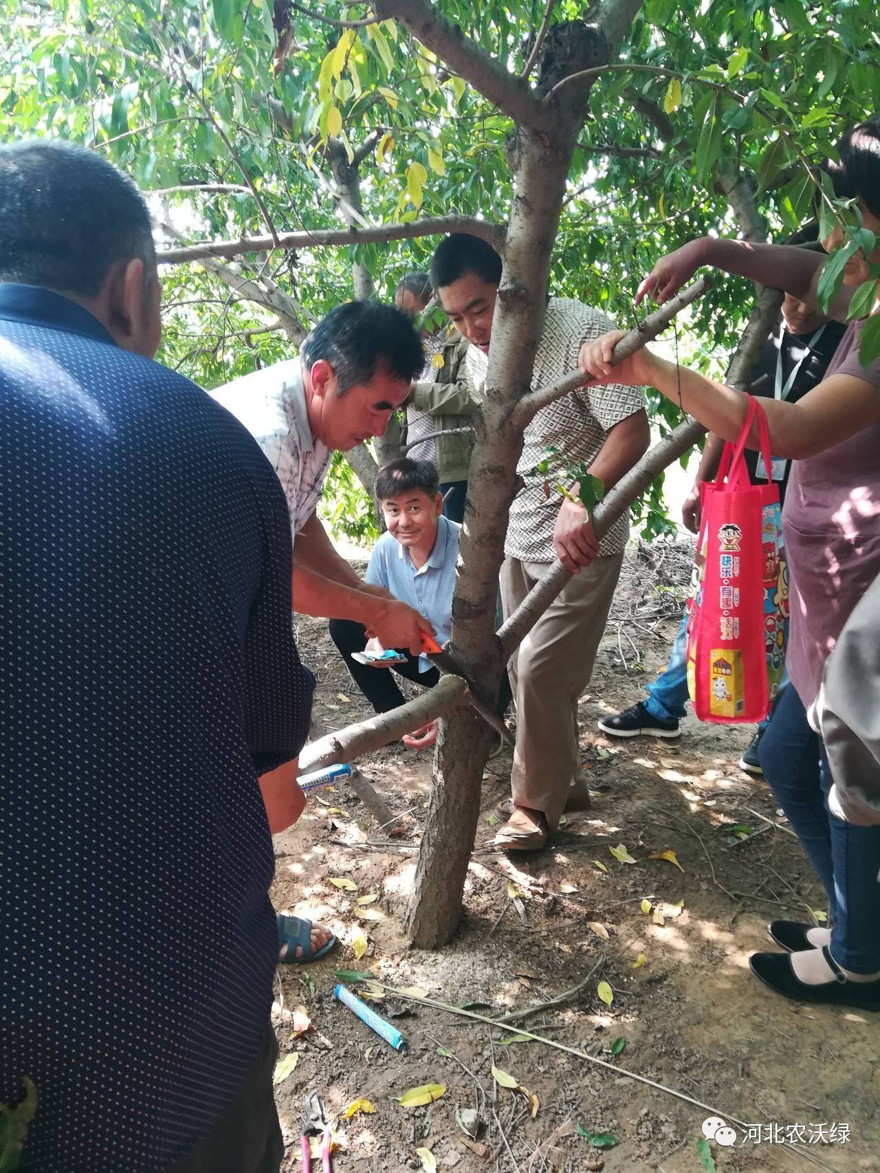 果農(nóng)在劉所長(zhǎng)的指導(dǎo)下對(duì)果樹進(jìn)行修剪。