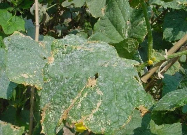 小麥收割后,當前正是玉米除草劑大量使用的時候,但是,蔬菜對于除草劑非常敏感。部分越夏小黃瓜棚內就有部分植株受到了除草劑的影響,葉片出現變黃、干枯等問題,在棚前臉處較為嚴重。因此,為防止除草劑藥害發(fā)生,應加強巡查,發(fā)現棚室周圍有噴灑除草劑的應及時關閉通風口,避免其飄移危害。