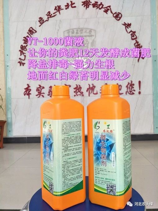 “農(nóng)沃綠VT-1000菌液”發(fā)酵時間快,除臭、分解有害物質(zhì),還能減少病蟲害、提高肥力,讓您的糞肥快速變菌肥。除此之外還可以降鹽排毒,強力生根,減少土壤紅白綠苔,效果明顯。