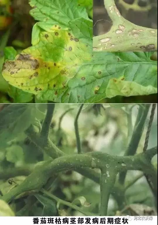 病斑初為橢圓形,褐色凹陷潰瘍狀,后沿莖上下擴(kuò)展到全株。嚴(yán)重時(shí),病部變深褐色干腐,并可侵入維管束。果實(shí)染病時(shí)侵染綠果或紅果,初為灰白色小斑塊,后隨病斑擴(kuò)大凹陷變褐色,長(zhǎng)出黑霉,引起腐爛,葉子病斑繼續(xù)擴(kuò)大時(shí),葉緣卷曲,最后葉片干枯或全株死亡。