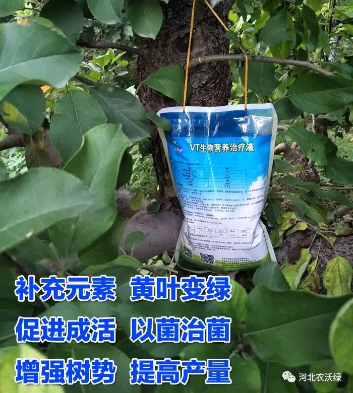 2、合理施肥增強樹勢,黑點病病菌與砂皮病病菌相似,都屬于弱寄生菌,在樹勢弱時極易感病,所以提升樹勢,可有效的增強其抗病能力。使用農(nóng)沃綠VT生物營養(yǎng)治療液給柑橘樹輸液,增強樹勢,產(chǎn)品中富含多種有益菌群,可以預防病害的發(fā)生發(fā)展。