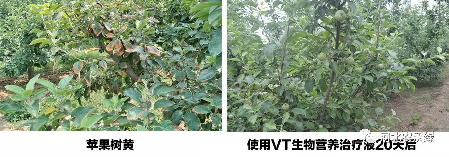 缺素引起的黃化,可使用農(nóng)沃綠VT生物營養(yǎng)治療液給大樹輸液治療。迅速補(bǔ)充各種大中微量元素,增強(qiáng)樹勢(shì),