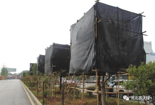 2、對于易發(fā)生日灼的苗木,及時搭設(shè)遮陰網(wǎng)。