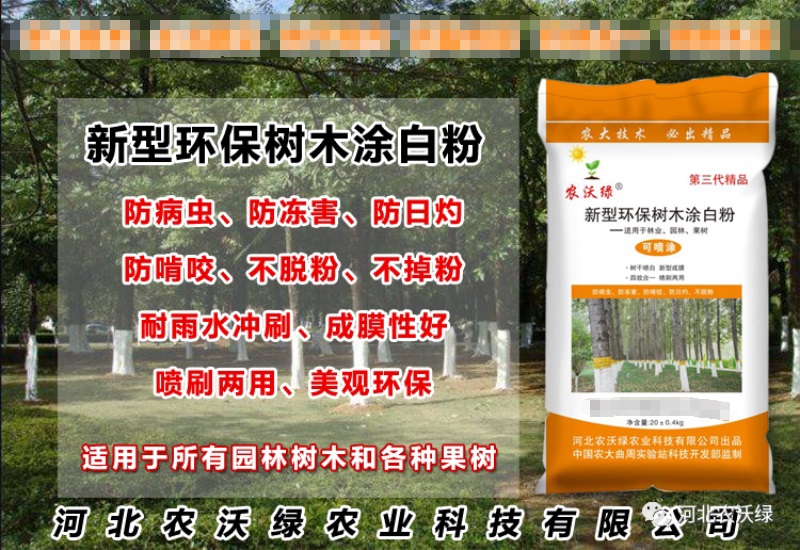 使用涂白劑也是防寒防凍的一種措施,農(nóng)沃綠第三代新型環(huán)保樹木涂白粉,噴刷兩用,成膜性好,防病蟲,防凍害,防啃咬,防日灼,上白后不脫粉不掉粉,耐雨水沖刷,能保護(hù)一年以上,安全美觀。