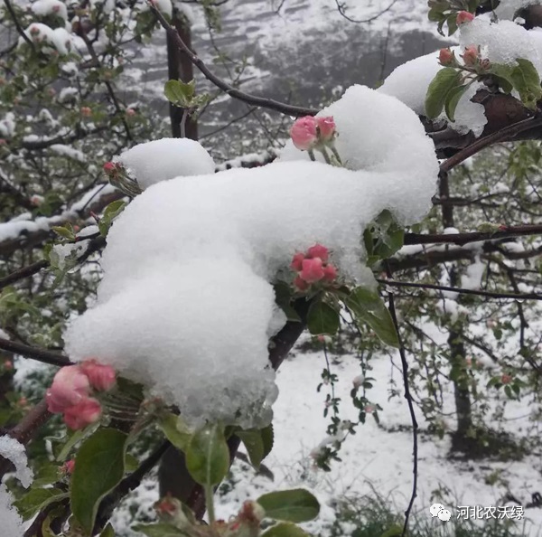 比如2018年4月8日河北發(fā)生的倒春寒,造成了我區(qū)蘋果、核桃、桃、梨等花和幼果受到嚴重的傷害,減產相當嚴重,有的果園絕收。2020年4月10日我區(qū)部分果園蘋果花期遭遇大雪,4月23日部分果園又發(fā)生嚴重霜凍,造成蘋果花器子房變黑,好多果園沒了產量,就連葉子也遲遲不長。